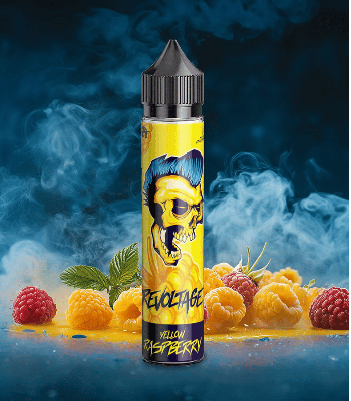 Revoltage Yellow Raspberry – šťavnaté žluté maliny s jemným ledovým nádechem. Shake & Vape 10 ml aroma v 60 ml lahvičce, ideální pro milovníky ovocných příchutí s osvěžením.